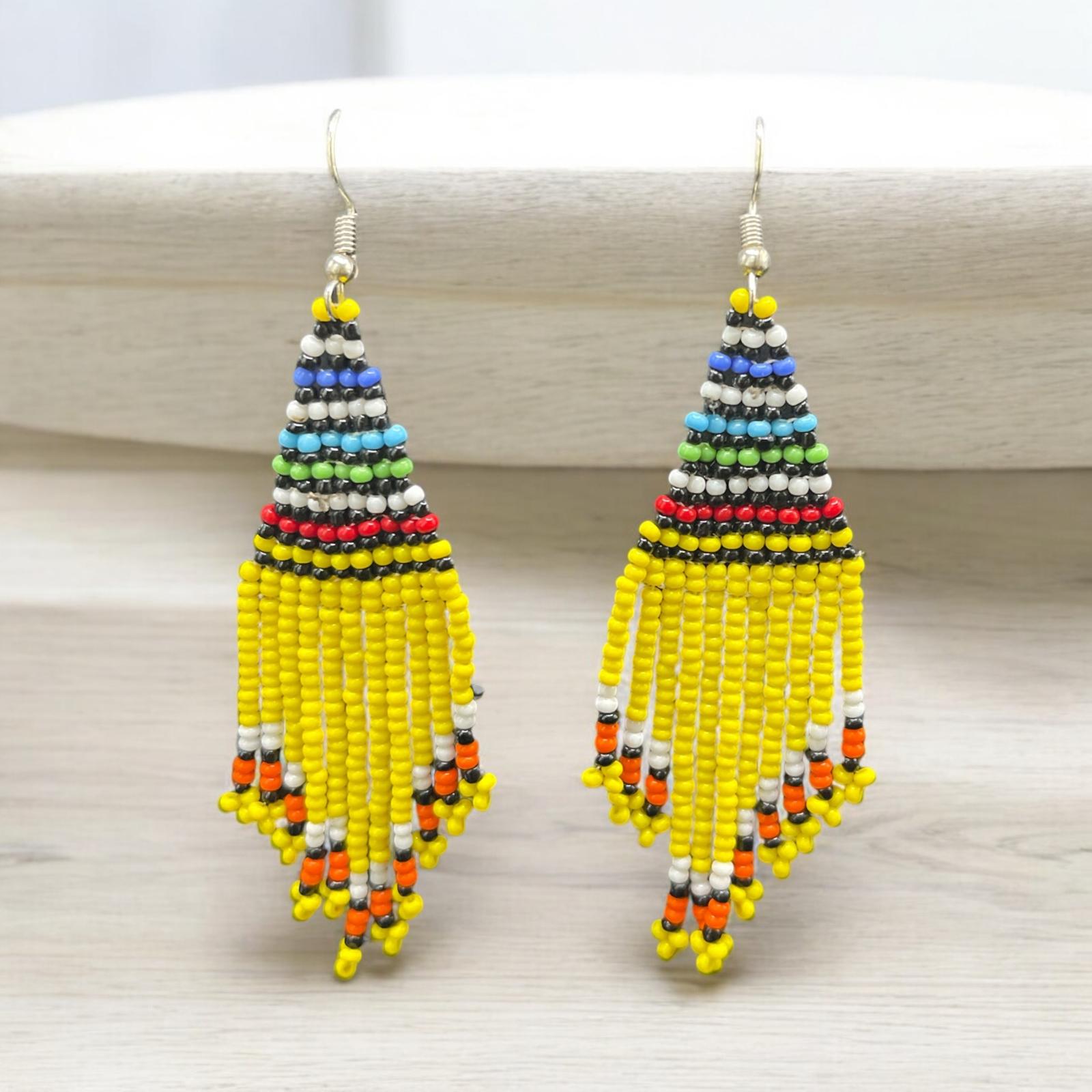 Yellow Multicoloured beaded Earring